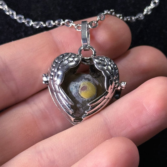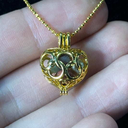 Ancient Roman Pearl & Terracotta & Glass Ancient Roman Bead Necklace in gold-plated Heart casing ,(100 B.C. - 100 A.D.)